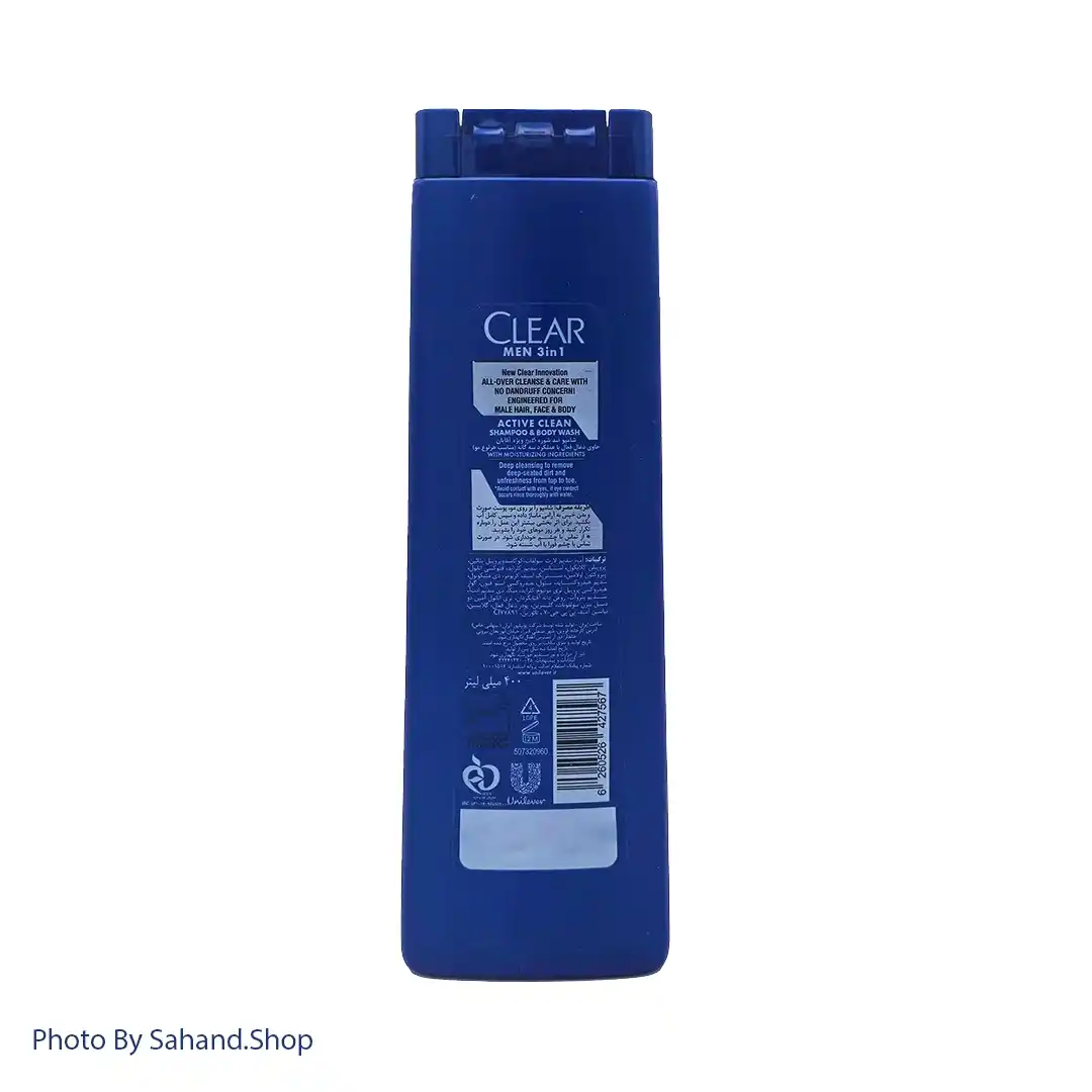 شامپو سه‌کاره مردانه کلیر مدل Active Clean 3in1 با فرمول ضدشوره و کربن اکتیو، علاوه بر شست‌وشوی مو، برای صورت و بدن نیز قابل استفاده است. این شوینده چربی و آلودگی را از عمق پوست و مو پاک کرده و حس تمیزی، طراوت و سبکی طولانی‌مدت برای آقایان به‌جا می‌گذارد.